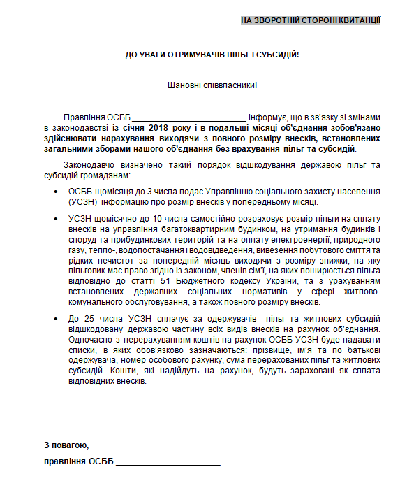 З 1 січня 2018р нараховувати повні внески і виставляти рахунки з повними сумами (без урахування пільг і субсидій).